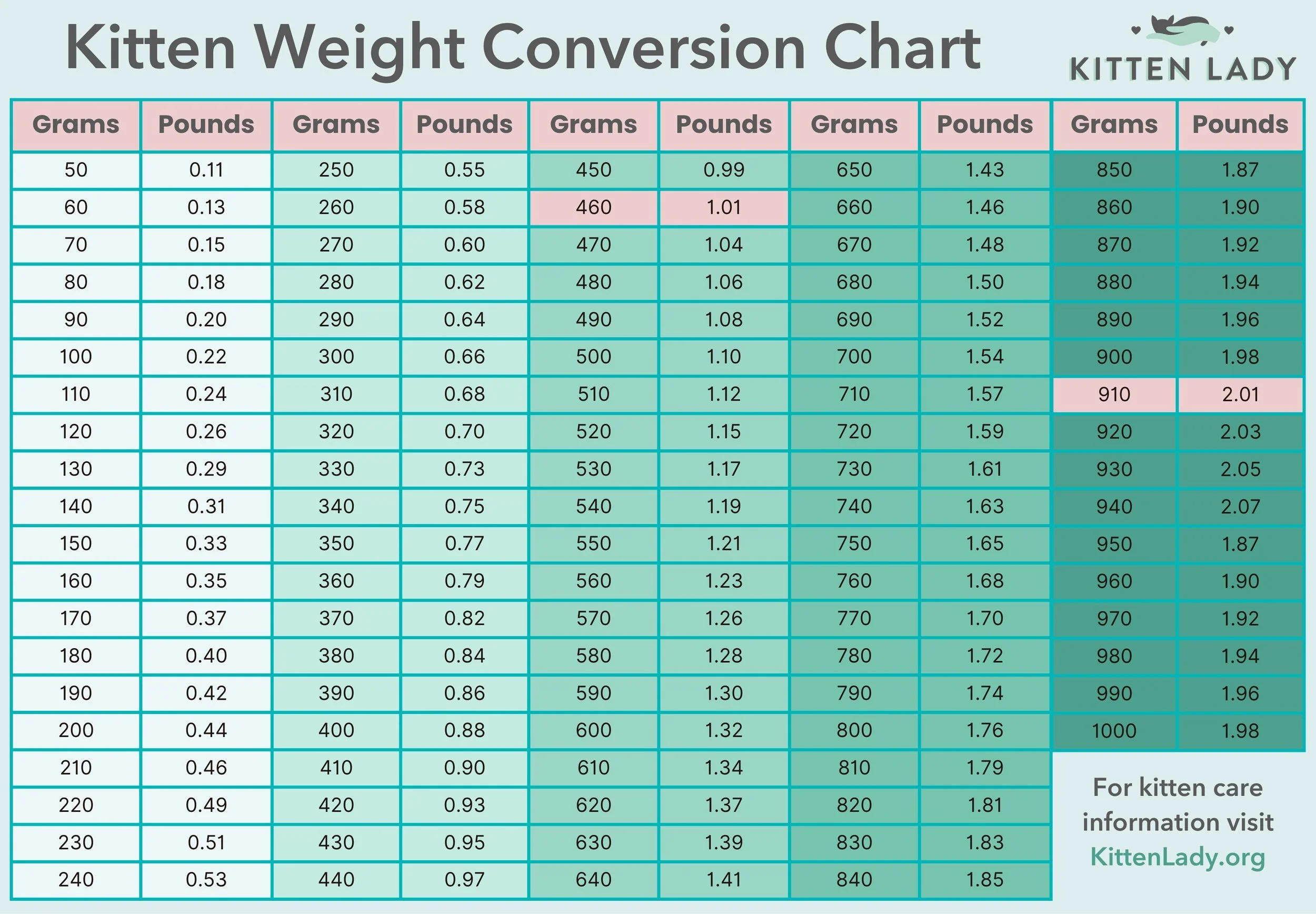 Printable Kitten Lady charts and posters can be freely used and distributed with attribution. Click the image to download a PDF!